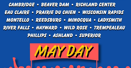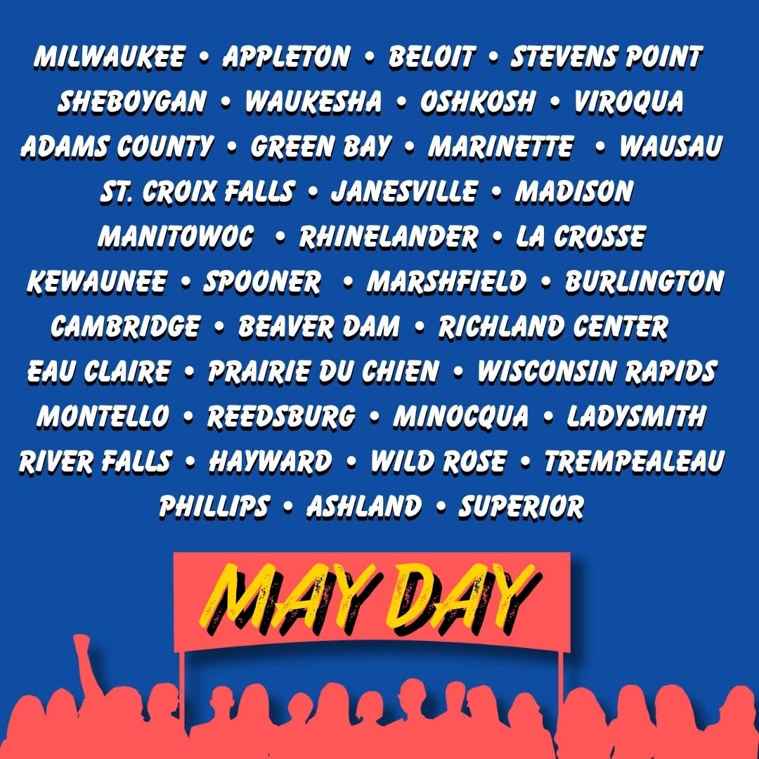 Share this postWisconsin ResistWisconsin! Are you ready for May Day? Let's Go!Copy linkFacebookEmailNotesMoreWisconsin! Are you ready for May Day? Let's Go!Wisconsin ResistApr 30, 2025Share this postWisconsin ResistWisconsin! Are you ready for May Day? Let's Go!Copy linkFacebookEmailNotesMoreSharewww.wisconsinresist.com for more details about events!